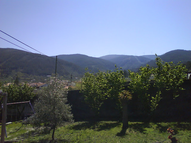 Todas estas imagens foram tiradas do sítio desta última que é a eira da casa. Quando era miúda era em laje e não tinha a vedação. O pinheiro que se vê ao fundo é um Radiata e de crescimento muito rápido em relação ao pinheiro tradicional. A chaminé grande é a chaminé da casa. Na primeira foto podem ver uma parte da serra de Vila Nova e no fundo dessa imagem fica a aldeia de Tábuas e o Santuário de Nossa Senhora da Piedade de Tábuas, pois também há um Santuário com o mesmo nome na Lousã.