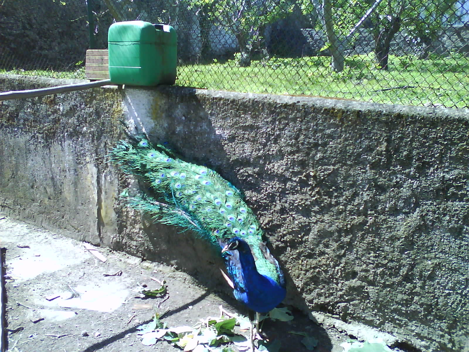 Este é o nosso pavão que já tem cerca de 15 anos. Não lhe apeteceu abrir o leque e por mais que eu fizesse, não me ligou nenhuma. Pode ser que para a próxima ele esteja mais bem disposto...