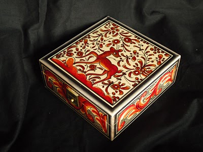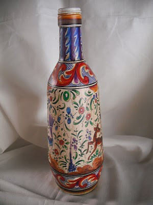 A razão de eu chamar a atenção para o blogue da Isaura é o facto de ela não se ter ficado pela louça e ter aplicado a decoração característica da mesma, a outros suportes. Assim, vocês vão ver caixas de madeira, cabaças, garrafas e tantas outras peças, decoradas primorosamente. Este é um dos tais blogues que vale a pena conhecer e nunca perder de vista. Vejam as peças mais antigas pois há imensa coisa para verem. Tem umas peças fantásticas!