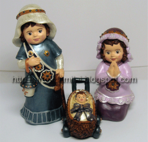 Bom dia para todo o Mundo! Hoje deixo-vos um presépio que ainda pintei no Verão. A dona tinha pressa dele...(faz coleção). É um presépio infantil e algo fora do vulgar. Nunca tinha visto um menino Jesus num carrinho de bébé...eheheheh! Não sei se foram as cores certas, tenho as minhas dúvidas, mas na altura foi o que me ocorreu. A saga das minhas miniaturas já está quase pronta. Só faltam as bolotas. Vamos ver se hoje, como é feriado, as consigo acabar.