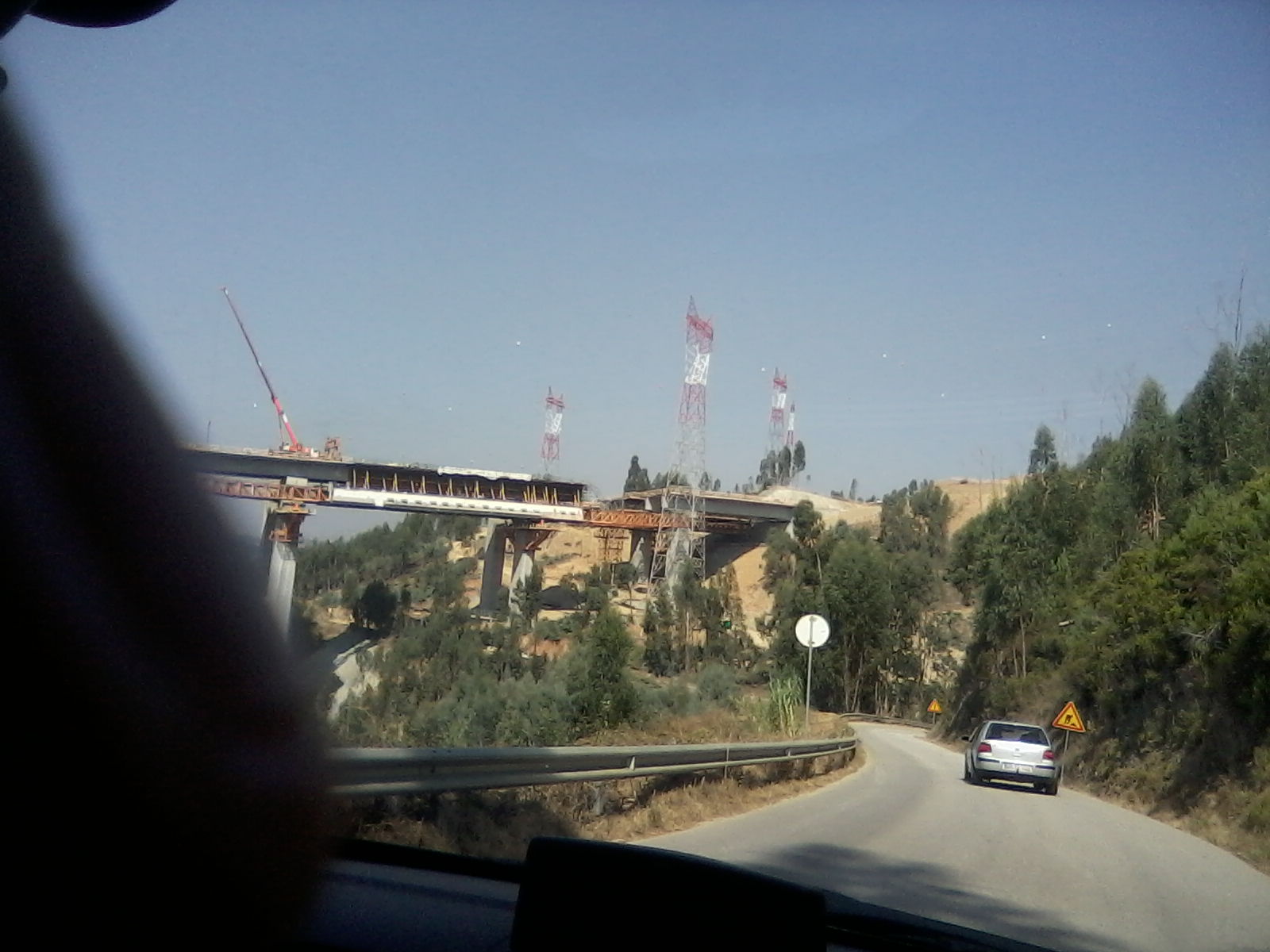 Passando a outro assunto e já fazendo referência ao título, deixo-vos umas fotos que tirei de dentro do carro com ele em andamento e com o meu telemóvel. Esta estrada liga Coimbra a Miranda do Corvo pelo lado dos Moinhos (há diversas estradas que fazem esta ligação), mas esta é a que eu utilizo mais.