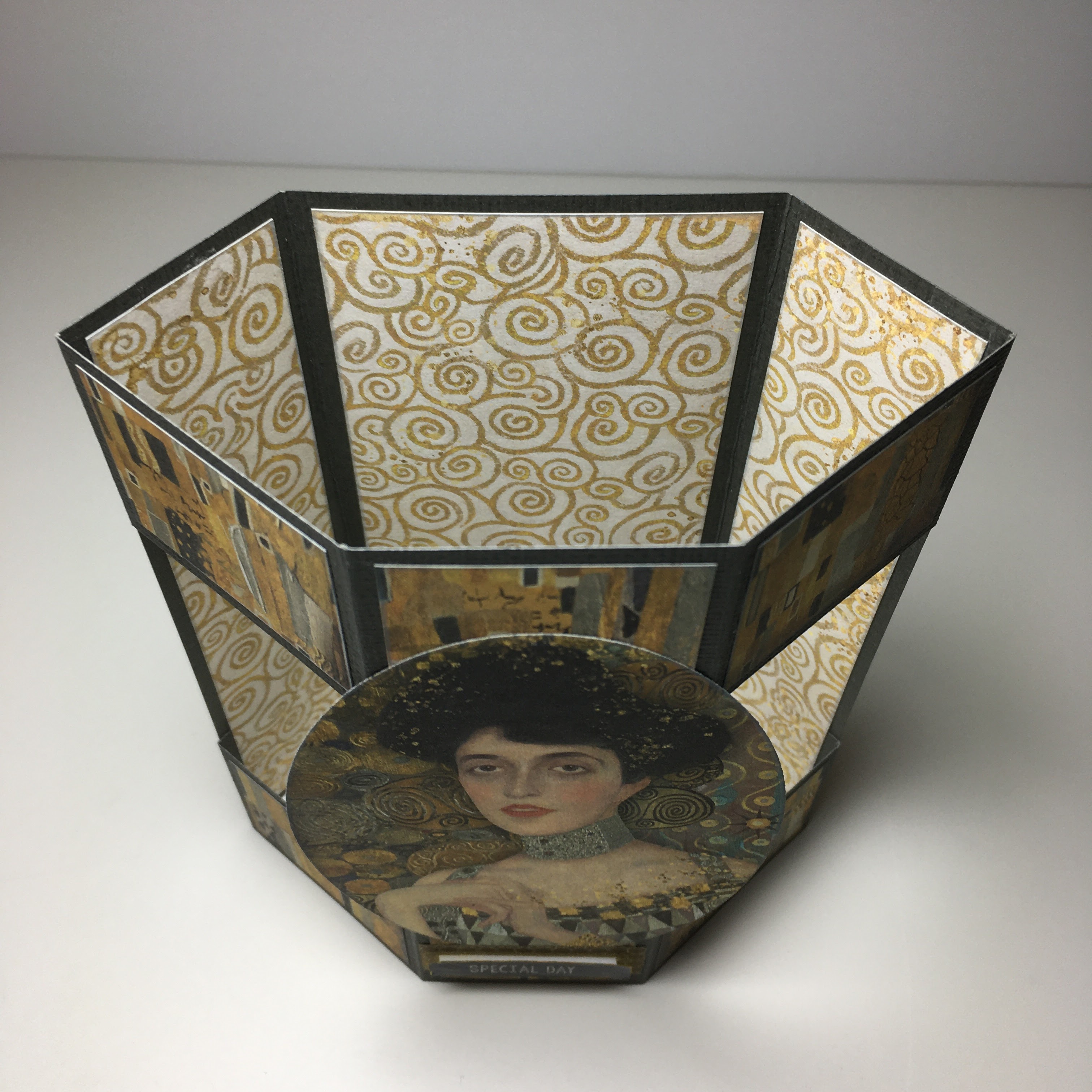 Boa tarde para todo o Mundo e muito obrigada pelas vossas visitas. Hoje venho mostrar mais um postal hexagonal quadrado. Neste utilizei papel da colecção Klimt da Stamperia e foi feito com papel de 6"x6". Este design de postal é mesmo viciante e por isso aqui fica mais um.