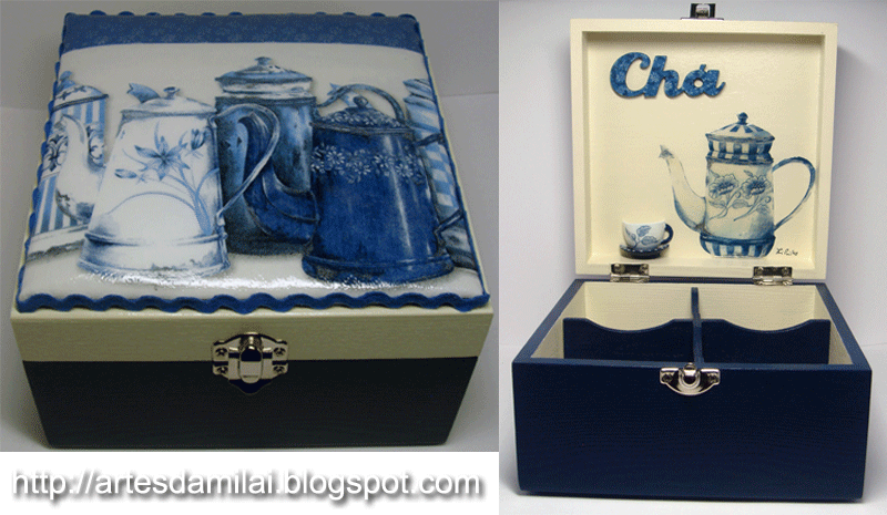 Hoje deixo-vos uma caixa para lenços que a minha irmã me pediu para fazer para a casa de banho dela, que é em tons de azul e creme. Ficou muito simples e apenas levou pintura, decoupage e umas boas camadas de verniz. O que torna esta caixa atraente são as imagens. Se repararem bem vêm que elas são todas diferentes. As imagens fui buscá-las à Stella. Obrigada por as lindas imagens que nos põe à disposição para as utilizar-mos. A minha irmã gostou muito.