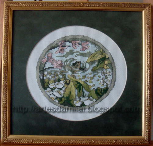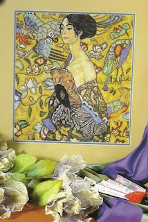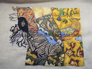 Boa noite a todo o Mundo! Como já estava afastada há muito tempo e já tinha saudades de mostrar umas coisinhas, resolvi hoje deixar-vos o novo trabalho de ponto de cruz que ando a fazer. Já foi começado em Setembro mas como dá um pouco de trabalho, vai lentamente...eheheheheh. Mesmo assim já tenho bordado um quarto do quadro como podem ver pela foto. Eu adoro os quadros do Klint e quando apanho um para bordar, não resisto. Este esquema foi tirado de um blogue de uma das minhas seguidoras, já há algum tempo. Saquei-o e guardei-o para quando tivesse tempo de o bordar. Em boa hora o fiz, pois agora voltei ao blogue que por sinal se encontra na minha lista e quando entro vêm dizer que o blogue já não existe. Vou deixar aqui o